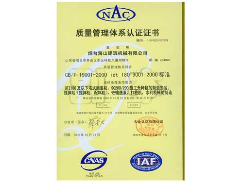 質(zhì)量管理體系認(rèn)證證書