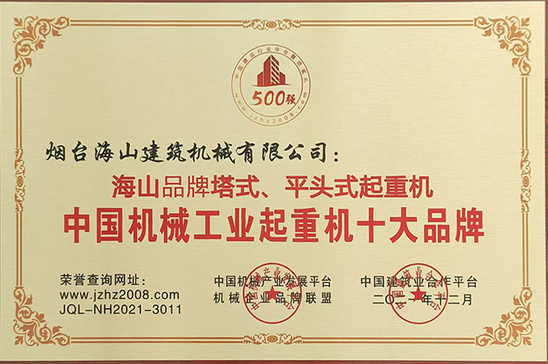 2021年評為起重機(jī)十大品牌